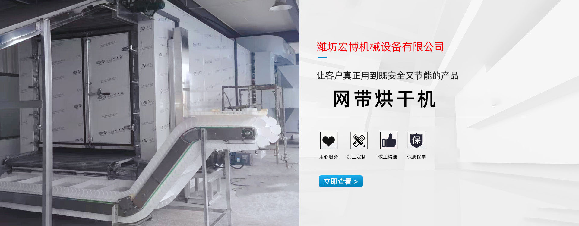 宏博公司主要產(chǎn)品有:網(wǎng)帶烘干機(jī)、食品烘干機(jī)、滾筒烘干機(jī)、隧道窯、烘干箱、燃?xì)鉄犸L(fēng)爐、高大車間供暖設(shè)備、礦用防爆電加熱器等。